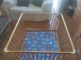Se vende cuna/ parque infantil de madera. En perfecto estado. Dimensiones 1 metro x 1 metro. Se regala colchón nuevo a medida. Muy fácil de montar y desmontar