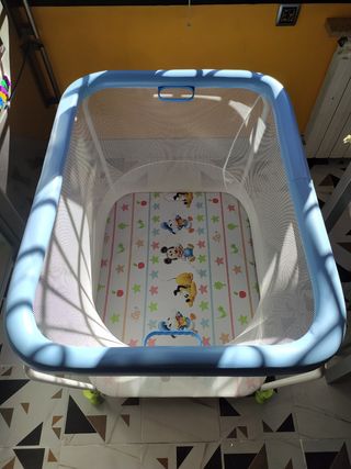 Parque infantil plegable, ideal para que los más pequeños jueguen con seguridad. Está en buen estado y es fácil de montar y desmontar. - Plegable para facilitar su almacenamiento. - Estructura ligera y resistente. - Malla transpirable.