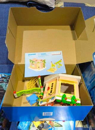 Playmobil City Life 5634, ¡listo para jugar! La caja está algo deteriorada por el uso, y puede que falte alguna pieza o figura. - Incluye 88 piezas. - Guardería y parque infantil. - Figuras Playmobil incluidas. - Ideal para niños de 4 a 10 años.