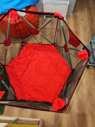 Parque infantil de tela roja con estructura. - Medidas: 128cm x 128cm x 66cm.