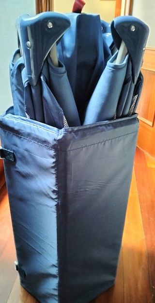 Sin usar. Puerta de acceso con cremallera y cuatro asas donde colgar cosas. El suelo es la protección exterior cuando se pliega. Va en su propia funda con asa. Está nuevo, sin usar. Precio negociable