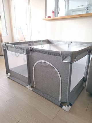 Parque infantil de 120x120 cm, ideal para que los más pequeños jueguen de forma segura. Incluye alfombra, 50 pelotas y bolsa de transporte. - Color: Gris V2. - Malla transpirable. - Fácil de montar y desmontar. La cremallera no funciona pero se arregla facil o se pone imperdible. Incluye colchón para debajo que quede blandito. Ideal esta totalmente nuevo. Comprado en amazon nuevo por 60€ hace 6 meses. Incluye ticket de compra. Esta desmontado guardado en su funda se entrega con todo los juguetes extras.