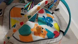 Parque de juego para bebés con un diseño colorido y divertido. Incluye varios juguetes colgantes para estimular al bebé. - Tapete acolchado con estampado de animales y formas geométricas. - Arcos superiores con juguetes. - Juguete de actividades colgante.