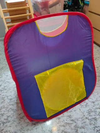 Parque infantil de gran tamaño, ideal para que los más pequeños jueguen y exploren de forma segura. - Medidas: 120x120 cm. - Estructura de tela y malla. - Incluye varios juguetes colgantes y bolas - también bolso para transportar comprado a 65 (ver foto) ***único desperfecto menor en la bolsa de red, pero no afecta***