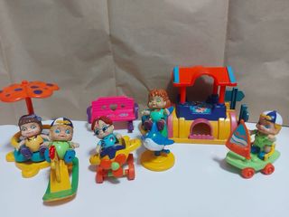 Conjunto de juegos y figuras de parque infantil de la marca New Ray, de los años 90. Parque New Ray Novelty. Muñecos jugados,les falta un poco de pintura. - Incluye varias figuras de niños y accesorios. - El parque tiene tobogán, columpio y otros elementos. - Colores vivos y diseño infantil.