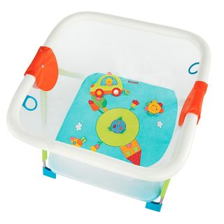 Precioso parque infantil plegable de la marca MS. Ideal para que los más pequeños jueguen con seguridad. - Plegable y fácil de transportar. - Estructura resistente y ligera. - Tejido de malla transpirable. - Diseño alegre y colorido con estampado de animales. - Incluye una colchoneta.