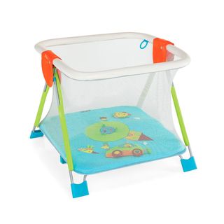 Parque cuna de viaje con un diseño alegre y colorido, perfecto para los más pequeños. Es fácil de montar y desmontar. - Estructura de metal y tela. - Laterales de malla para ventilación. - Incluye bolsa de transporte. - tiene un roce en un lateral, sale en la segunda foto