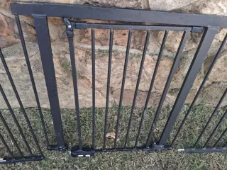 Barrera de seguridad para niños, ideal para mantener a los más pequeños a salvo. Barreras de seguridad niños tengo dos unidades - Color gris. - Estructura metálica.