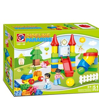 Los más pequeños de la casa sienten irremediablemente el deseo de construir. , Para que puedan dejar volar su imaginación y hacer las construcciones más creativas, presentamos el juego Pipeline Paradise. , Se trata de un juego con 51 piezas para armar, desde edificios y parques hasta árboles. Recomendado para niños de 3 años en adelante. , Modelo: Item No. 23575 / No.188-46.