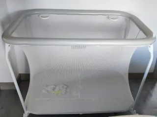 Parque infantil de 1'10 x 1'10, plegable con un dedo, plegado ocupa muy poco espacio, como nuevo,solamente dos pequeños agujeritos.
