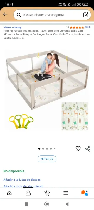 Parque infantil de la marca Amazon, ideal para que los más pequeños jueguen de forma segura. - Estructura de tela y malla. - Diseño plegable para fácil almacenamiento. - Puerta con cremallera para acceso.