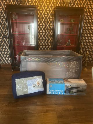 Parque o cuna de viaje marca Asalvo MIX PLUS, incluye colchón, cambiador con bolsillos , doble soporte para cuando el bebé es mas pequeño poderlo dejar y coger con mayor facilidad y funda de transporte. Con caja, bolsa de colchón e instrucciones. El colchón tiene funda con cremallera para poder lavarlo en lavadora. Muy completo, lo podrás usar desde el nacimiento, es súper cómodo ya que puedes dejar al bebé y no tiene peligro de caídas ni golpes. Es plegable, siendo muy fácil de guardar y transportar. Con gatera para que los bebés mas grandes puedan salir y entrar