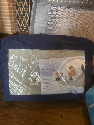 Preciosa barrera de cama para bebé, en buen estado. Ideal para proteger a los más pequeños. - Fácil instalación y desmontaje. - Estructura resistente y ligera. - Malla transpirable para una buena ventilación.