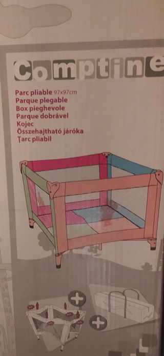 parque de tela cuadrado 97x97 multicolor plegable.ideal para bebés.se puede plegar y llevar de vacaciones.