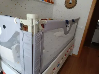 Barrera cama jane hay que poner la tela pero se abre y pliega bien.