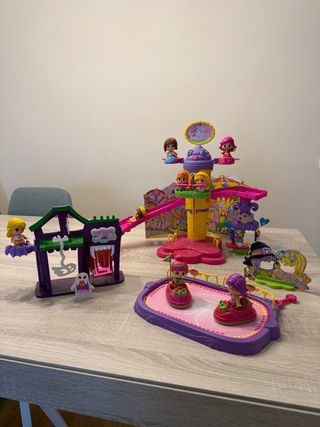 Set de juegos Pinipon con varios accesorios. - Incluye casa de fantasmas. - Incluye pista de patinaje. - Incluye accesorios de colores. - 11 personajes, un unicornio y un gasto. - Carroza que se abre y coche con remolque.