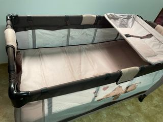 Coqueto, elegante y divertido parque cuna infantil+ cuna de viaje, muy poco uso como nuevo. Es una edición especial más completa de la marca Hauck en tonos beige y negro. Toda ma descrispción en la última imagen.