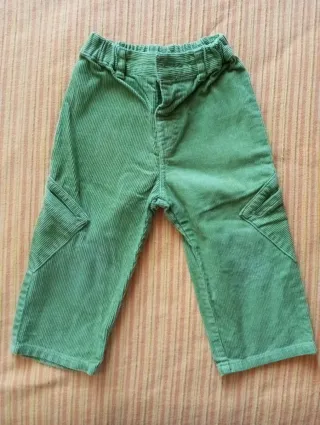 Pantalón de pana para invierno, talla 12-18 meses. Botón y goma en la cintura. - Material de pana. - Color verde.