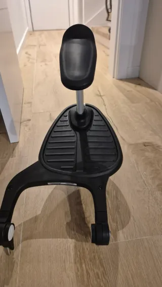 Accesorio para cochecito Bugaboo que permite a un niño mayor viajar de pie. - Plataforma ancha y antideslizante. - Rueda para mayor maniobrabilidad. - Asiento integrado y extraíble. - Casi sin usar.