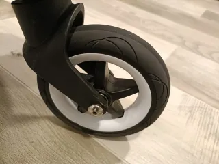 Patinete para carrito Bugaboo. - Plataforma con superficie antideslizante. - Rueda delantera con suspensión. (como se ve en la foto la rueda esta desgastada) lo he utilizado bastante pero esta bien.