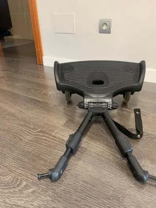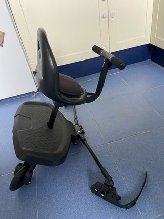 Plataforma patinete universal para acoplar a cochecitos. - Diseño en color negro. - Ruedas para facilitar el desplazamiento. - Asiento integrado. No se ha usado nunca esta completamente nuevo