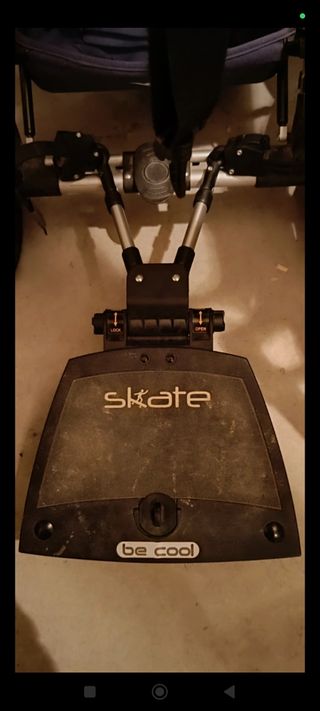 Patín para agarrar detrás carro bebé y poder llevar a otro niño. Lleva asiento para ir más cómodo. Sirve para cualquier carrito al ser universal. Es de la marca BBest de el corte inglés