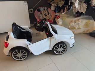 Coche eléctrico infantil con licencia oficial Mercedes-AMG. Ideal para los más pequeños. - Diseño deportivo y elegante. - Volante y pedales para una conducción realista. - Posibilidad de conduccion con control remoto y manual. - Radio con posibilidad de poner USB para musica personalizada, aparte de canciones que ya trae por defecto. - Peso maximo de 30Kg.