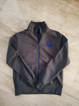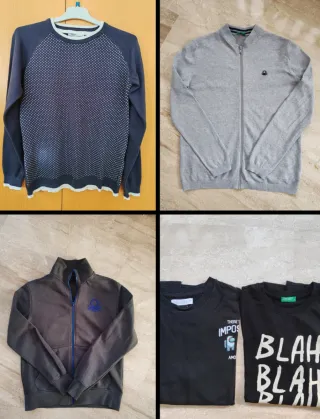 Lote ropa niño 12/13 años, perfecto estado: 2 camisetas algodón manga larga, color negro, Zara/Benetton 1 cardigan algodón cremallera, gris, Benetton 1 jersey algodón, azul marino, Losan 1 sudadera algodón cremallera, gris oscuro, Benetton