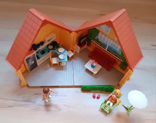 Playmobil Casa de Muñecas Maletín 5167. Equipada con cocina, salón, baño y habitación para padres y bebé. Edad recomendada a partir de 4 años. Incluye todas las piezas. En perfecto estado, como nuevo.