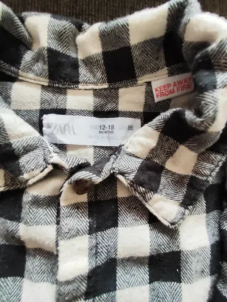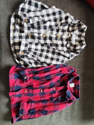 Conjunto de dos camisas de cuadros, una en blanco y negro y otra en rojo y azul. - Camisa de cuadros blanco y negro. - Camisa de cuadros rojo y azul. Roja de H&M talla 80 cm Negra de zara talla 86 cm