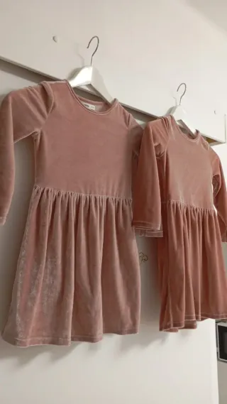 Conjunto de dos vestidos de terciopelo para niña. - Color rosa palo. - Manga larga. - Diseño con vuelo en la falda. Tengo 2 vestidos igual. Precio Individual 12 euros.
