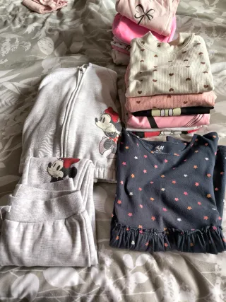 Lote de ropa para niña de 12 a 18 meses, alguna prenda puede ser de 18-24 meses. - Incluye un conjunto de pantalón y sudadera gris de la Minnie Mouse. - 1 vestido fino de estrellas - 2 sudaderas finas - 5 camisetas - 10 pantalones/leggins