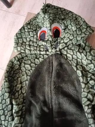 Disfraz de pijama con diseño de dinosaurio. La cola va con velcro . REGALO CAMISETA DINOSAURIO. - Talla 4-5 años - Color verde con estampado de escamas. - Capucha con detalles de ojos y cresta. - Cierre frontal con cremallera.