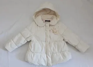 ABRIGO BLANCO ROTO MARCA ZARA BABY TALLA 24-36 MESES (94 CM) PRECIO: 4 € (gastos de envío no incluidos en el precio). NOTA IMPORTANTE, EN LA ETIQUETA DE DENTRO TIENE UN NOMBRE ESCRITO. MEDIDAS: SISA A SISA: 33 CM LARGO: 39 CM MANGA: 35 CM Parka de abrigo en color crema para niña, talla de 24 a 36 meses. Cuenta con capucha y un bonito detalle floral. - Color: Crema - Talla: 24-36 meses - Diseño con capucha - Adorno floral en la parte delantera