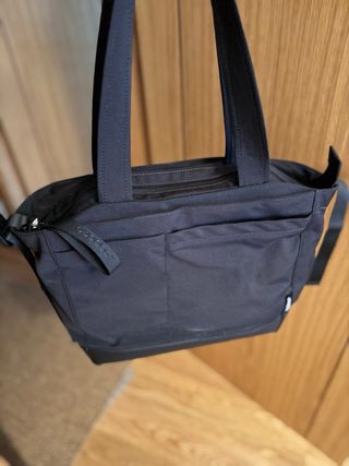 Tiene unas pequeñas manchas de pintura amarilla en el bolsillo exterior. Medidas aproximadas: Alto: 43 cm Ancho: 37 cm Profundidad: 15 cm