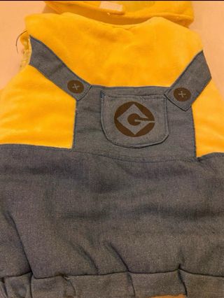 Disfraz de Minion para bebé, perfecto para fiestas. Incluye gorro y chaleco. - Gorro con diseño de un ojo y pelo. - Chaleco con peto y detalles de tirantes. - Color amarillo y azul. Talla 9/12