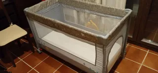 Cuna de viaje de la marca Tuctuc, ideal para transportar y usar en cualquier lugar. Diseñada con un estampado de estrellas. - Laterales de malla transpirable. - Estructura plegable para facilitar su almacenamiento y transporte. - Ruedas para moverla fácilmente. Con colchón de espuma de regalo. Solo fue usada muy poco el la casa del pueblo.