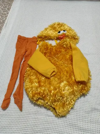 Disfraz de pollo para niños, ideal para fiestas o eventos. - Incluye traje y gorro. - Color amarillo brillante. - Material suave y cómodo.
