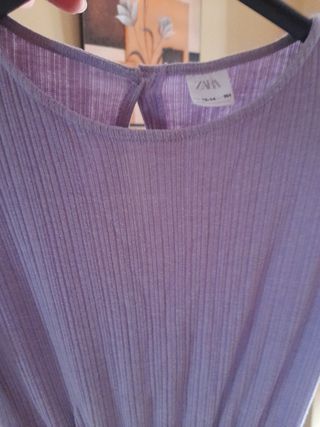 Mono de niña color lila, abotonado atrás muy cómodo y ponible. Aunque su talla es la 13-14, viene pequeño. Tejido algodón y elastina