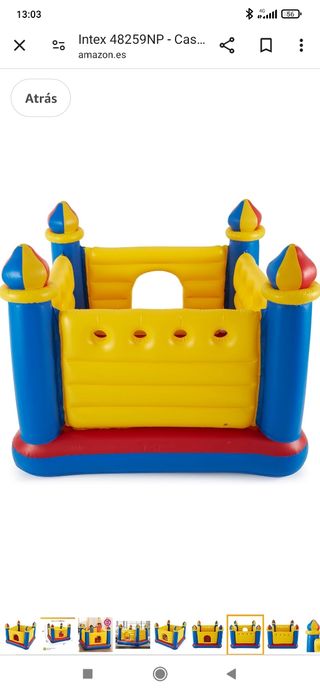 Castillo hinchable para niños de Intex. Suelo hinchable 175 x 175 x 135 cm. Para 2 niños. Peso máximo 45 kg. Color amarillo, rojo y azul. Como incidencia tiene un pequeño agujero el cual se puede reparar con un parche. Se vende ya que se ha quedado pequeño para el uso de nuestro hijo. Se vende a mitad de su precio original. Se conserva muy bien.