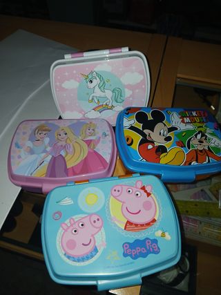Lote de 21 botellas de aluminio y plástico infantiles. 4 portameriendas infantiles Nuevos sin usar