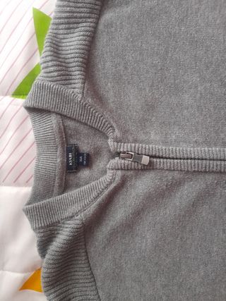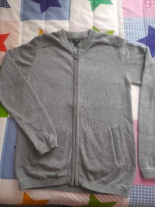 Chaqueta de punto para niño, color gris, con cremallera. Es de manga larga y tiene bolsillos. Está en buen estado. - Tejido de punto suave. - Cremallera frontal. - Bolsillos laterales. - Manga larga.