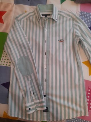 Camisa de niño de rayas verde agua, marca Spagnolo. Talla 12, para niño delgado, entallada. Como nueva