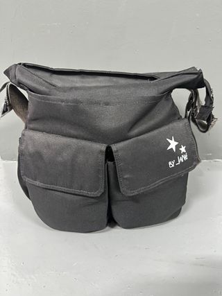 Bolsa porta ropa y pañales etc para bebé. Tiene un compartimento grande, dos bolsillos laterales (donde se ven las letras blancas) y otros dos con gomas laterales ideales para los biberones.