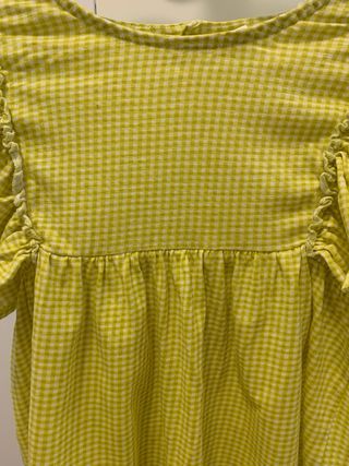 Vestido de niña con estampado de cuadros. - Color amarillo. - Mangas con volantes. - Cuello redondo.