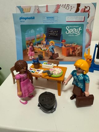 Set de Playmobil 70121, Clase Señorita Flores, de lancoleccion Dreamworks Spirit Riding Free. Incluye figuras y accesorios para recrear escenas de clase. - Figuras de personajes. - Mobiliario de aula. - Accesorios temáticos. - Está perfecto, pero la caja no la tengo. El folleto de instrucciones sí.