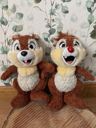 Este lote incluye dos peluches de los personajes de Disney Chip y Chop o Chip y Dale. En buen estado tal cual se ven en las fotos, se entregan lavadas y desinfectadas. Se aceptan ofertas por lotes junto a otros artículos de mi perfil.