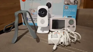 Sistema de vigilancia para bebés Motorola con pantalla. - Incluye cámara y unidad de monitor. - Adaptador de corriente.