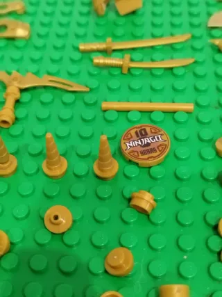 Conjunto de accesorios dorados de Lego Ninjago. - Piezas variadas para tus creaciones. - Color dorado metálico.