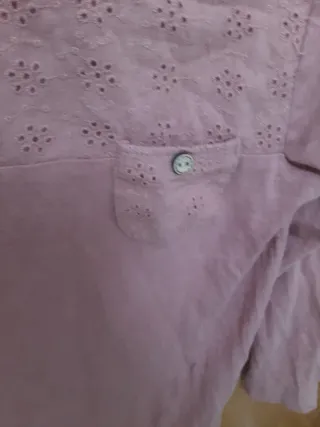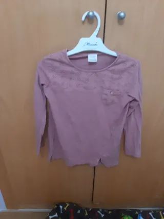 Camiseta de manga larga para niña.con un pequeño bolsillo - Color rosa palo. - Detalle de puntilla en la parte superior delantera. - Bolsillo decorativo en el pecho.
